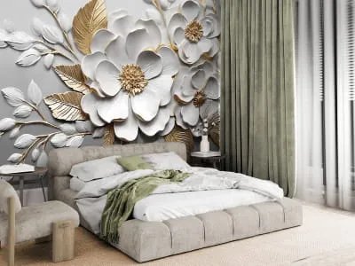 Фотошпалери Біло-золоті квіти 3Д ( 27158 )Вартість залежить від розмірів