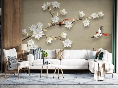 Фотошпалери Квітуча гілка і птиці 3Д ( 25093 )Вартість залежить від розмірів