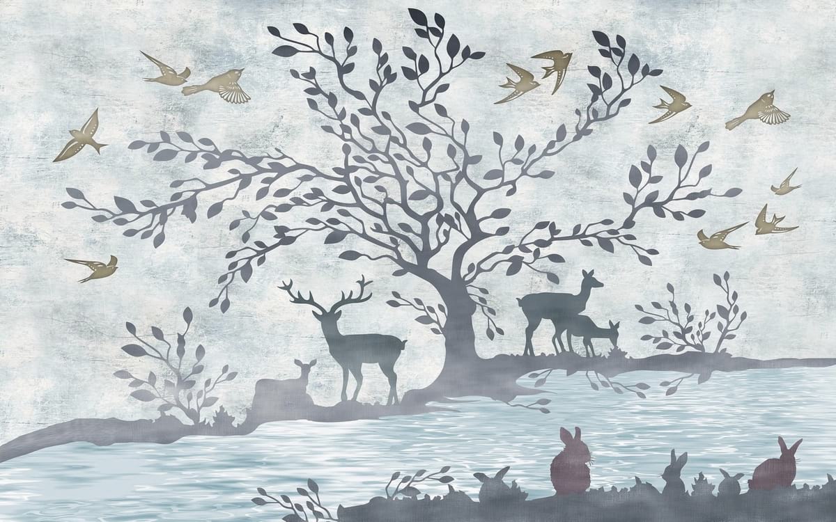 Фотошпалери Тварини біля річки малюнок ( 21566 )Вартість залежить від розмірів