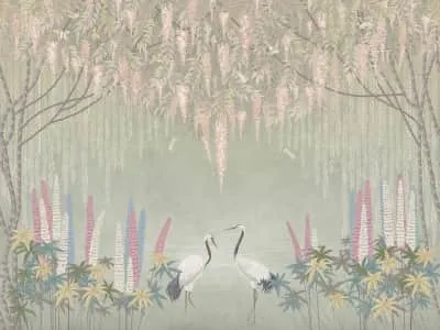 Фотошпалери Журавлі у саду з гліциніями ( 23510 )Вартість залежить від розмірів