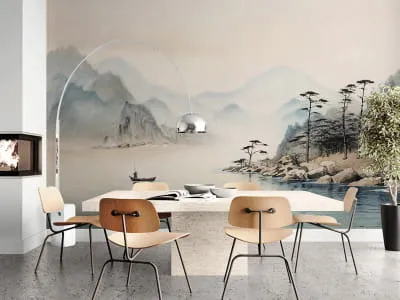 Фотошпалери Річка серед гір, акварель ( 27229 )Вартість залежить від розмірів