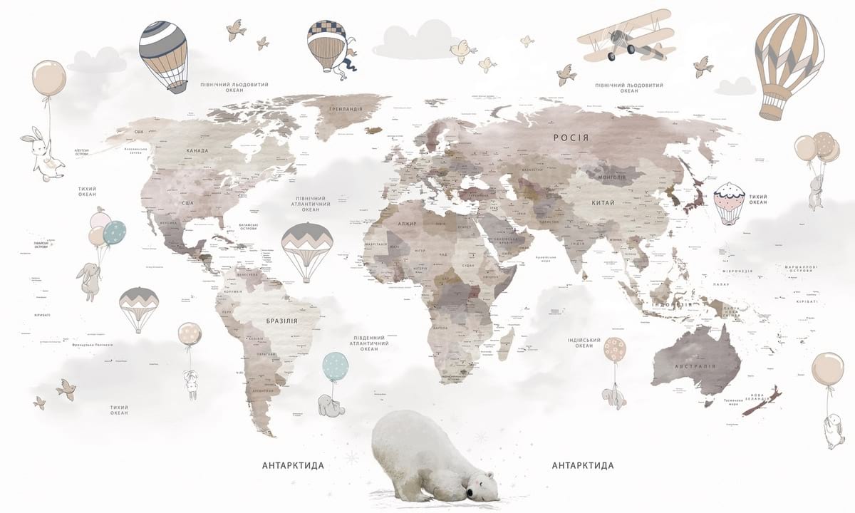Фотошпалери Карта світу дитяча, УКР ( 26657 )Вартість залежить від розмірів