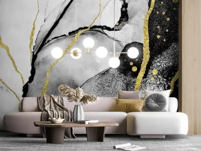 Фотошпалери Чорний із золотом флюїд арт
