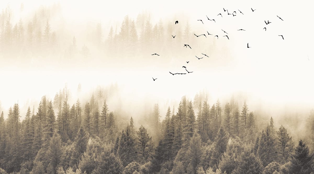 Фотошпалери Птахи над туманним лісом ( 24426 )Вартість залежить від розмірів