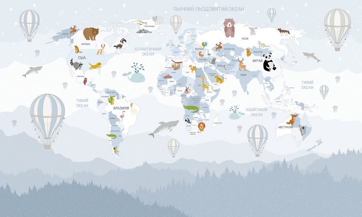 Фотошпалери Карта зі звірятами, УКР ( 24450 )Вартість залежить від розмірів