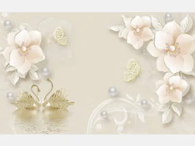 Фотошпалери Ніжні квіти з лебедями ( 25081 )Вартість залежить від розмірів