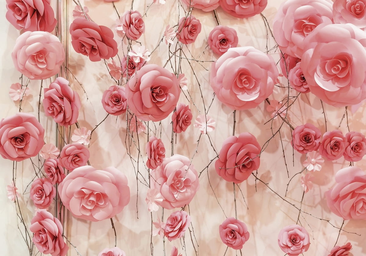 Фотошпалери Стіна з пудрових троянд ( 24912 )Вартість залежить від розмірів