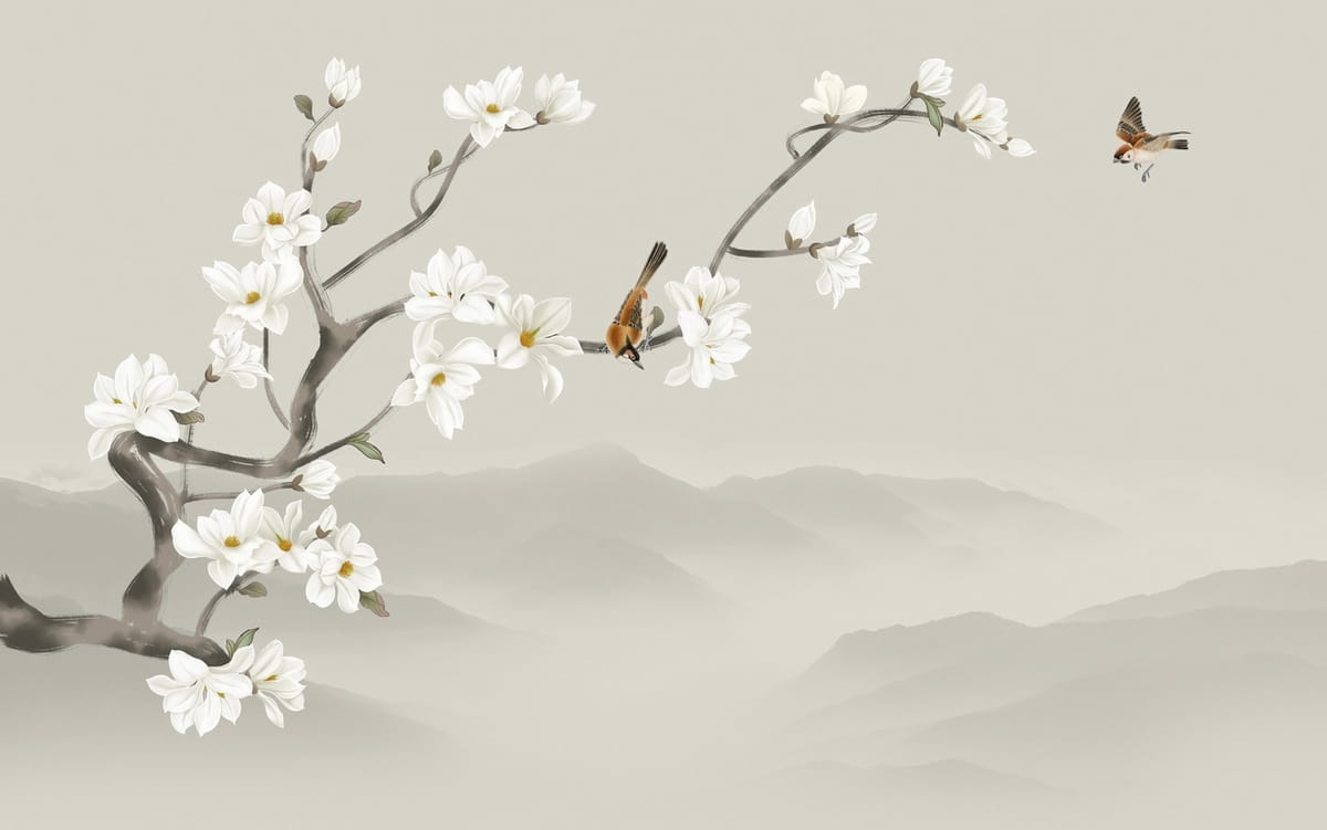 Фотошпалери Птахи у квітучих гілках ( 27059 )Вартість залежить від розмірів