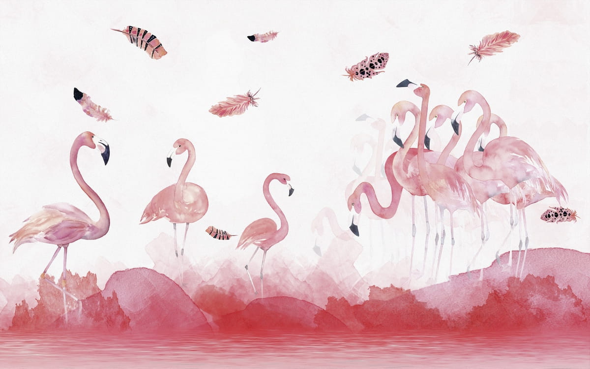 Фотошпалери Красиві фламінго, акварель ( 26596 )Вартість залежить від розмірів