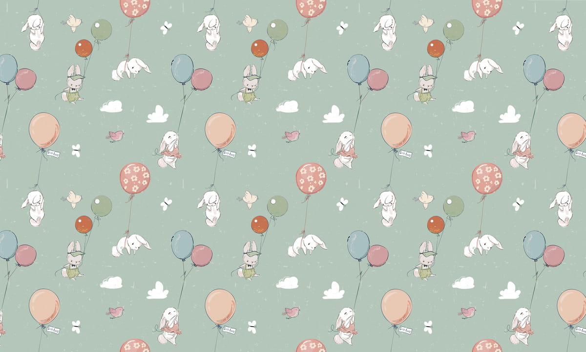 Фотошпалери Зайченята із синіми кульками ( 25013 )Вартість залежить від розмірів