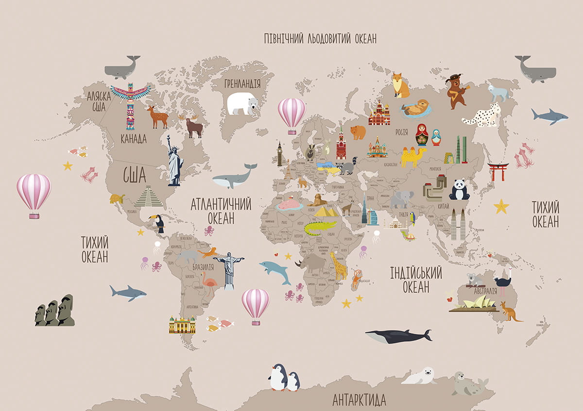 Фотошпалери Карта світу з тваринами, укр ( 26408 )Вартість залежить від розмірів