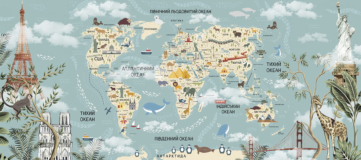 Фотошпалери Карта світу з тваринами, укр ( 26408 )Вартість залежить від розмірів