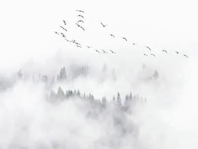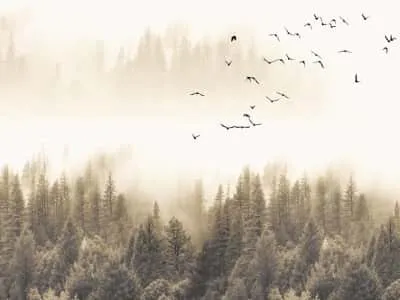 Фотошпалери Птахи над туманним лісом ( 24426 )Вартість залежить від розмірів