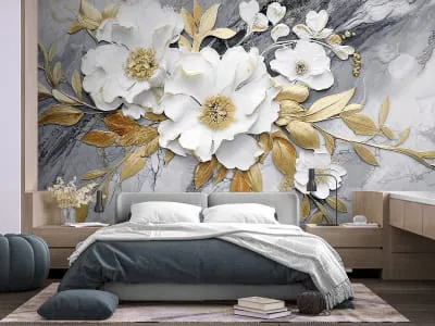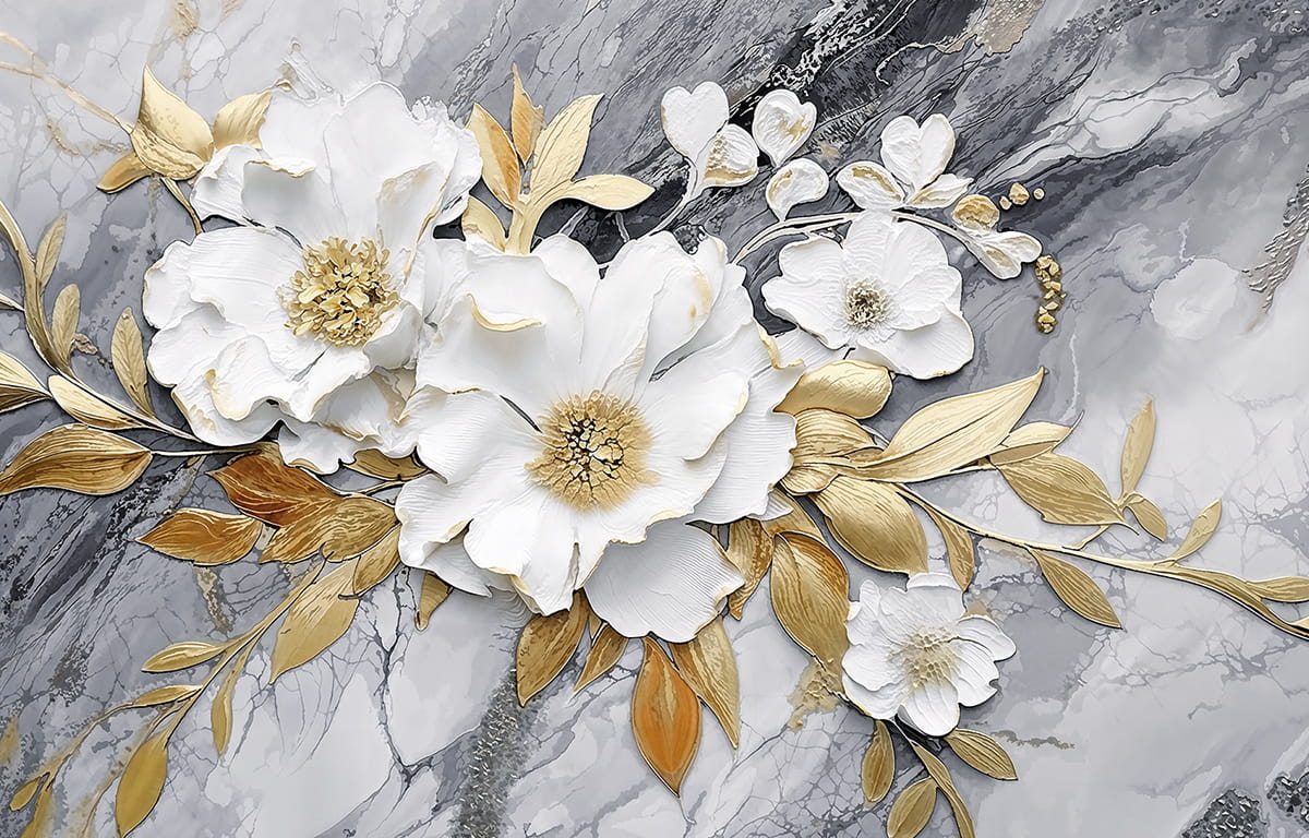 Фотошпалери Квіти на сірому мармурі 3Д ( 27150 )Вартість залежить від розмірів