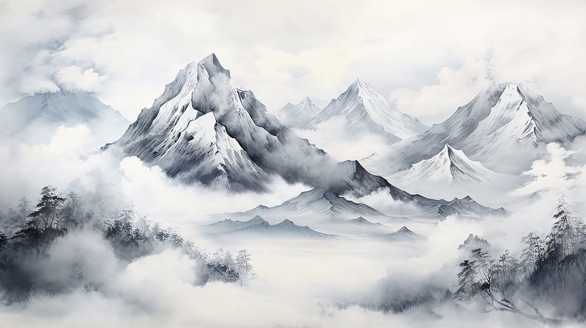 Фотошпалери Світлі гори у тумані ( 27112 )Вартість залежить від розмірів
