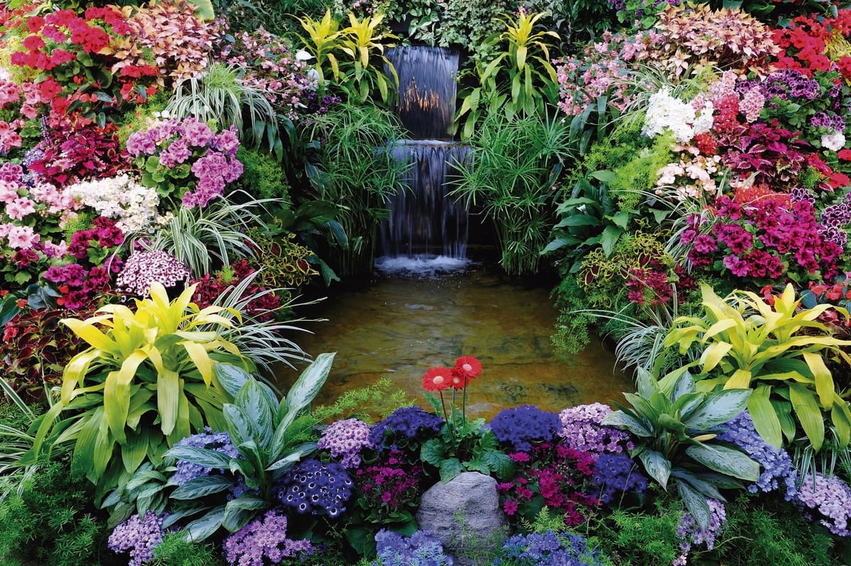 Фотошпалери Водоспад в квітучому саду ( 2942 )Вартість залежить від розмірів
