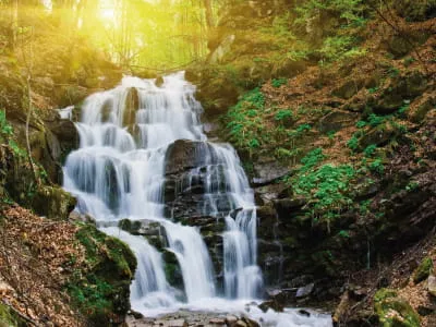 Фотошпалери Водоспад у сонячному лісі ( 2954 )Вартість залежить від розмірів