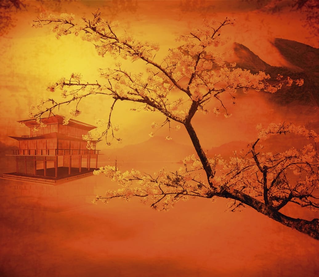 Фотошпалери Квітуче дерево на заході ( 9857 )Вартість залежить від розмірів