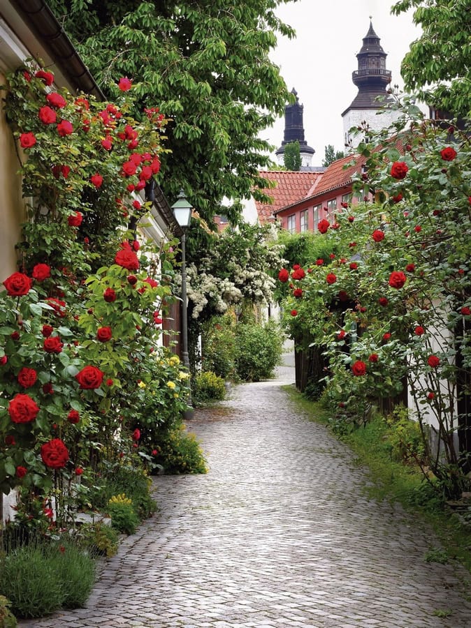 Фотошпалери Червоні квіти на вуличці ( 2677 )Вартість залежить від розмірів