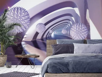 Фотообои Пурпурный коридор и сферы 3Д ( 25092 )Стоимость зависит от размеров