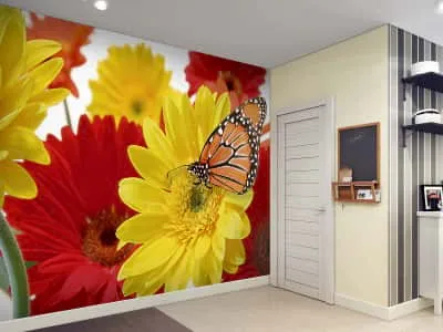 Фотообои Герберы и бабочка ( 1942 )Стоимость зависит от размеров