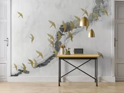 Фотообои Золотая стая на мраморе ( 24619 )Стоимость зависит от размеров