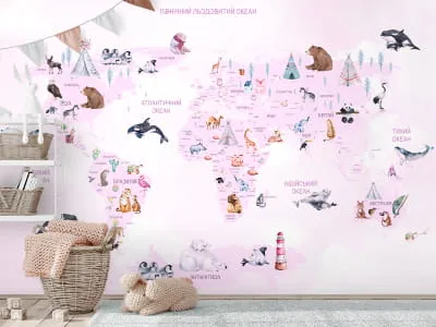 Фотообои Розовая карта мира, укр ( 26402 )Стоимость зависит от размеров