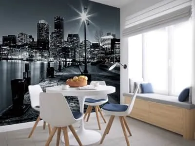 Фотообои на кухню нужно выбирать, обращая внимание на цветовую гамму и стиль интерьера. Для кухни часто выбирают: