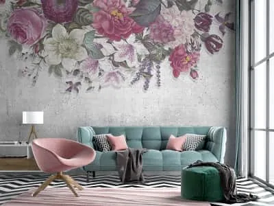 Фотообои Рисунок цветов на стене ( 23950 )Стоимость зависит от размеров