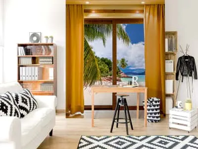 Фотообои Тропический пляж за окном ( 3213 )Стоимость зависит от размеров
