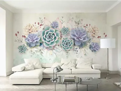 Фотообои Рисунок цветов на стене ( 23950 )Стоимость зависит от размеров