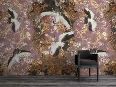 Фотообои Летящие журавли с золотом ( 23520 )Стоимость зависит от размеров