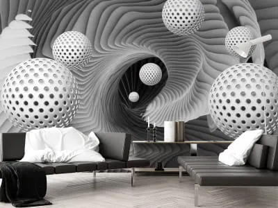 Фотообои Летающие сферы в тоннеле 3Д ( 24865 )Стоимость зависит от размеров