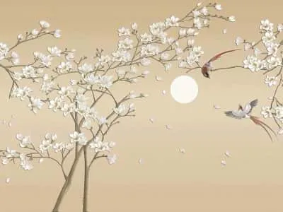 Фотообои Цветущая ветка и птицы 3Д ( 25093 )Стоимость зависит от размеров
