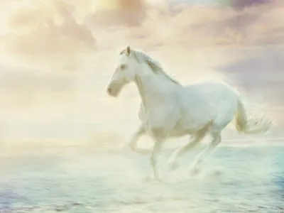 Фотообои Бегущий белый конь ( 7913 )Стоимость зависит от размеров