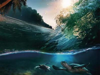 Фотообои Черепаха и дельфины ( 20610 )Стоимость зависит от размеров