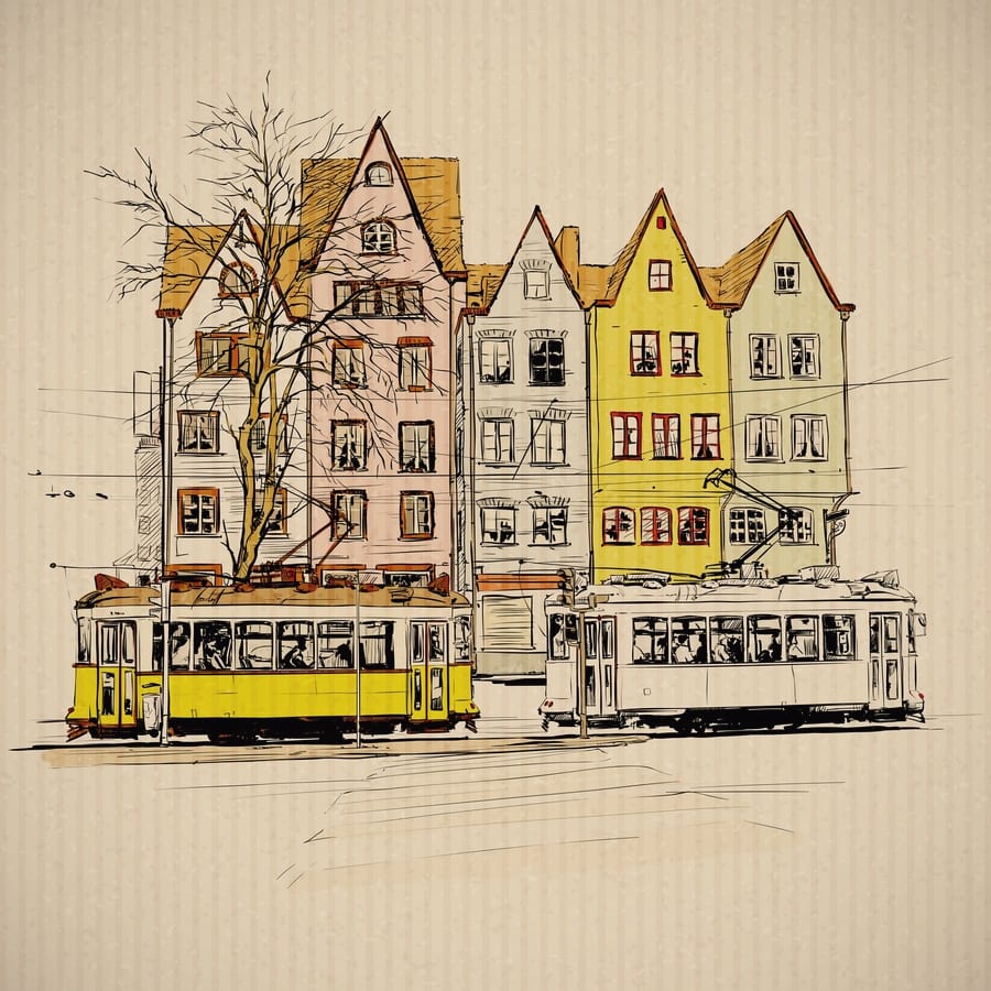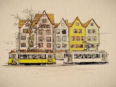 Фотообои Трамвай рисунок ( 12647 )Стоимость зависит от размеров