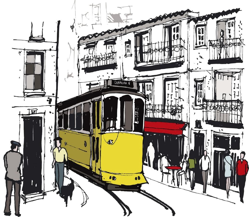 Фотообои Жёлтый трамвай рисунок ( 12662 )Стоимость зависит от размеров