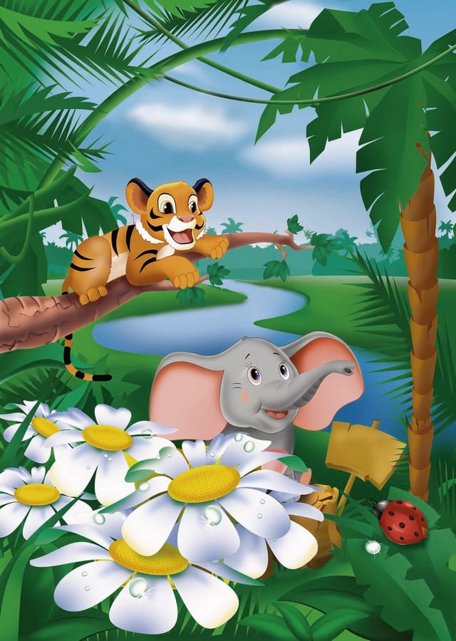 Фотообои Тигрёнок и слонёнок ( 1850 )Стоимость зависит от размеров