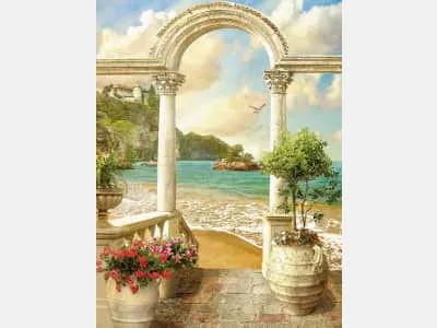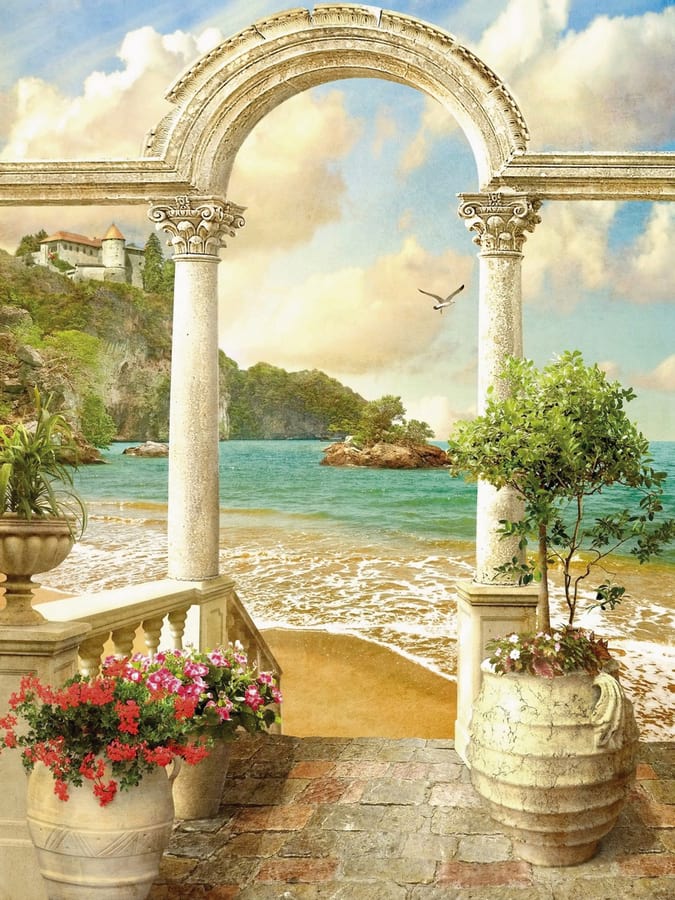 Фотообои Дворик у берега моря ( 10543 )Стоимость зависит от размеров