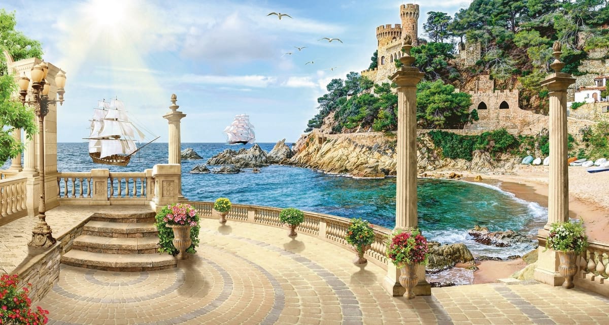 Фотообои Дворик у берега моря ( 10543 )Стоимость зависит от размеров