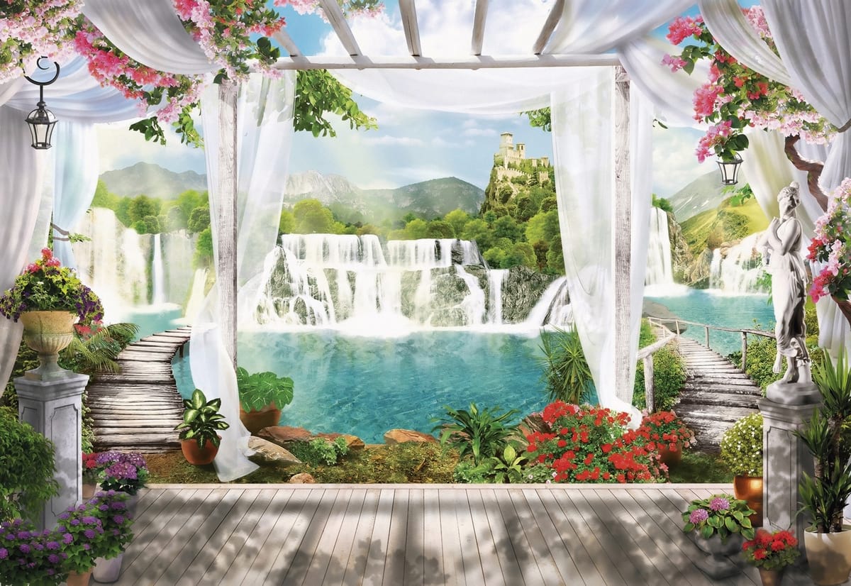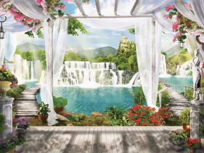 Фотообои Летняя терраса с водопадом ( 20373 )Стоимость зависит от размеров