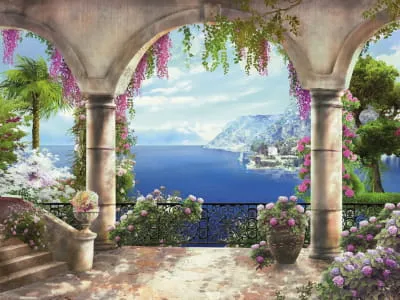 Фотообои Дворик у берега моря ( 10543 )Стоимость зависит от размеров