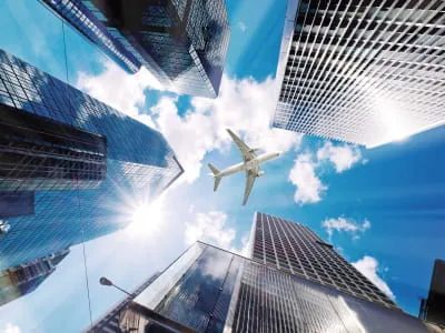 Фотообои Самолёт над городом ( 20691 )Стоимость зависит от размеров