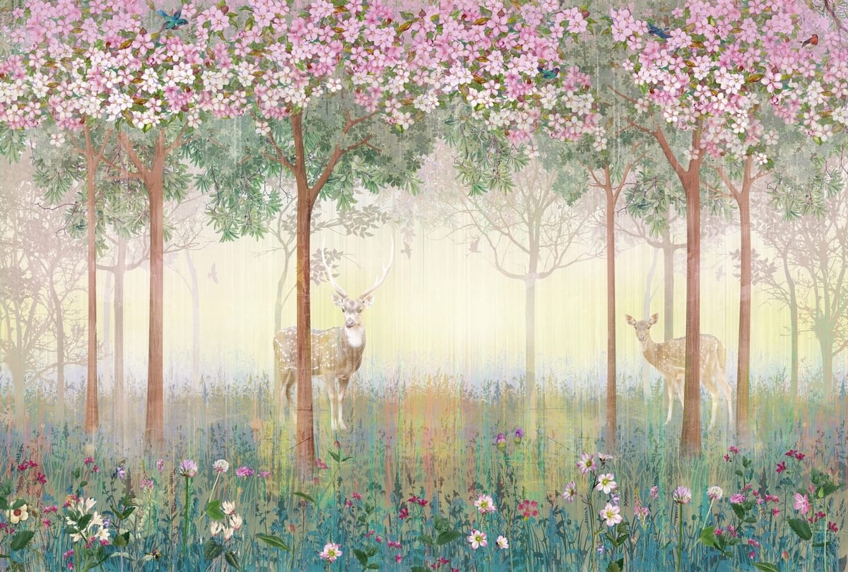 Фотообои Олени в цветущем лесу ( 20722 )Стоимость зависит от размеров