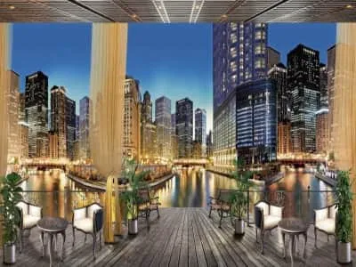 Фотообои Терраса в ночном городе ( 10680 )Стоимость зависит от размеров