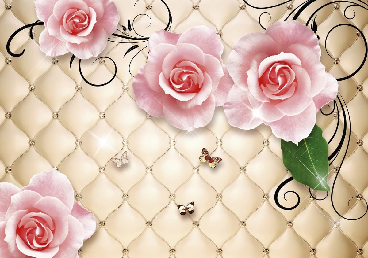 Фотообои Красивые розовые розы 3Д ( 27015 )Стоимость зависит от размеров