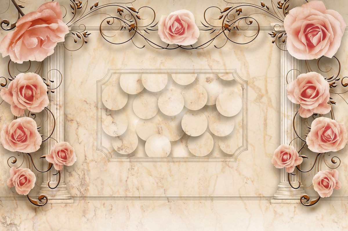 Фотообои Колонны и розы 3Д ( 21027 )Стоимость зависит от размеров