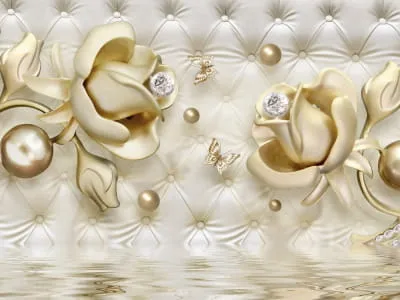 Фотообои Цветы с жемчугом 3Д ( 23535 )Стоимость зависит от размеров