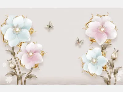 Фотообои Жемчужные цветы и бабочки ( 25094 )Стоимость зависит от размеров